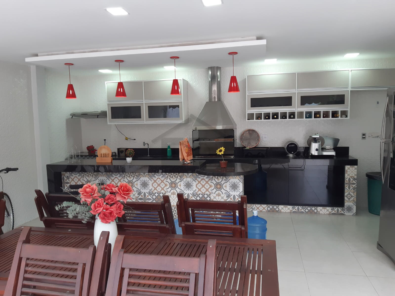 5 quartos sendo 1 suíte, 3 banheiros sociais, cozinha, closet, piscina, área gourmet. Piso em porcelanato.