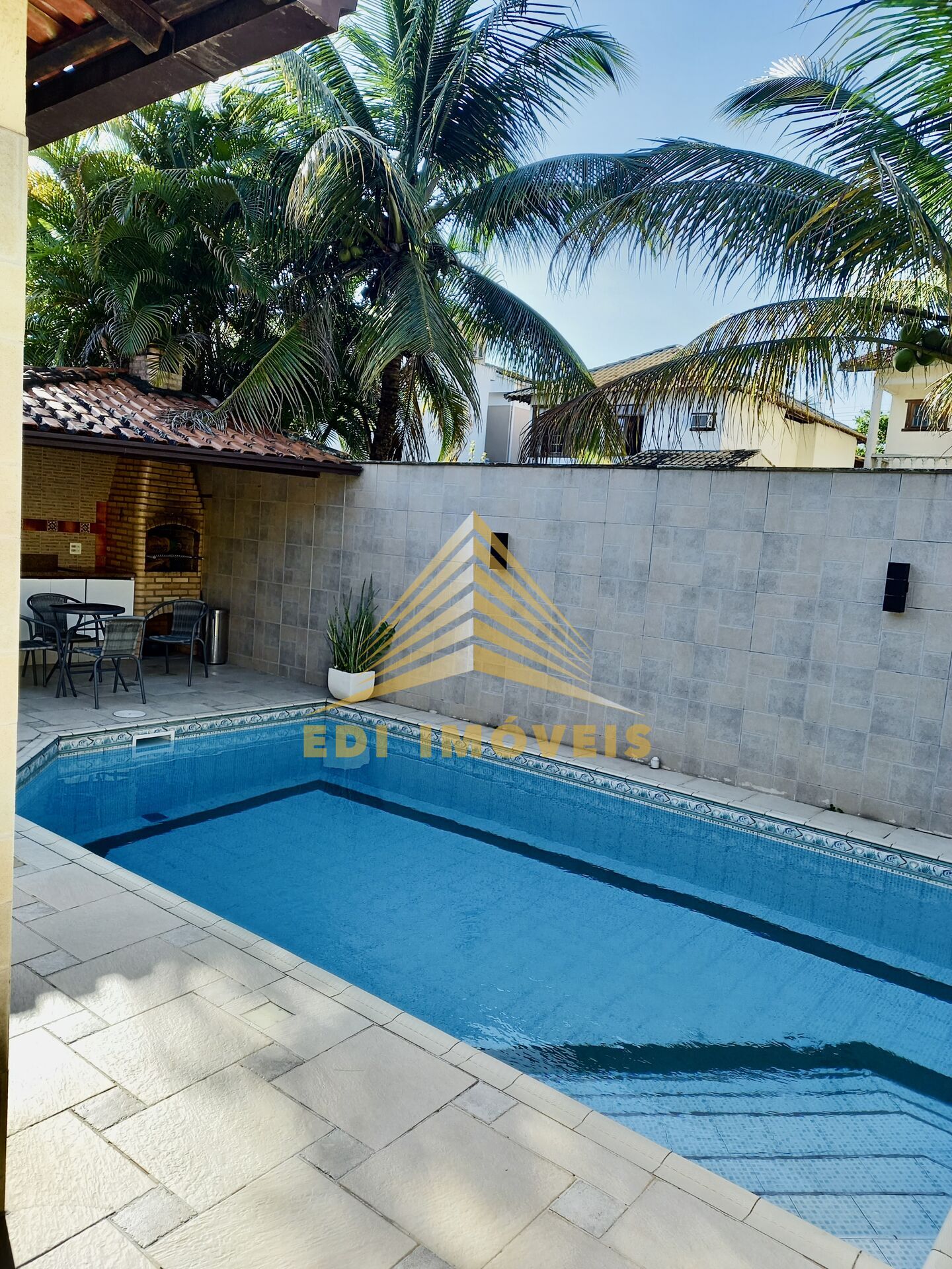 E um maravilhoso espaço gourmet com piscina, pia e churrasqueira.