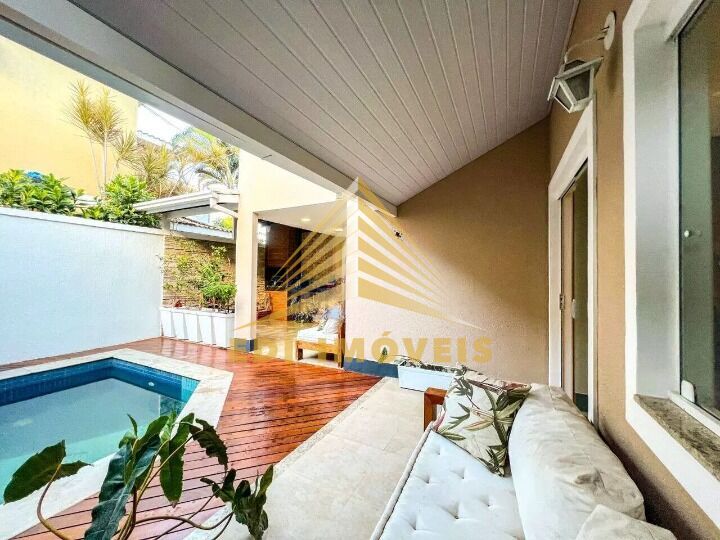 A área externa é um dos destaques do imóvel, com piscina, churrasqueira, varanda gourmet, quintal, garagem para 2 carros e uma bela vista para o verde, ideal para quem busca tranquilidade e contato com a natureza.